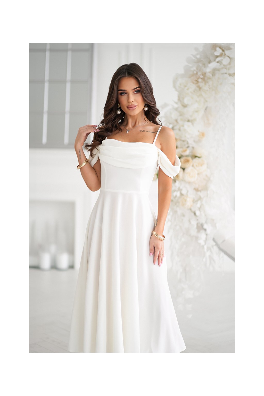 Biele midi šaty s padavými rukávmi 325/4