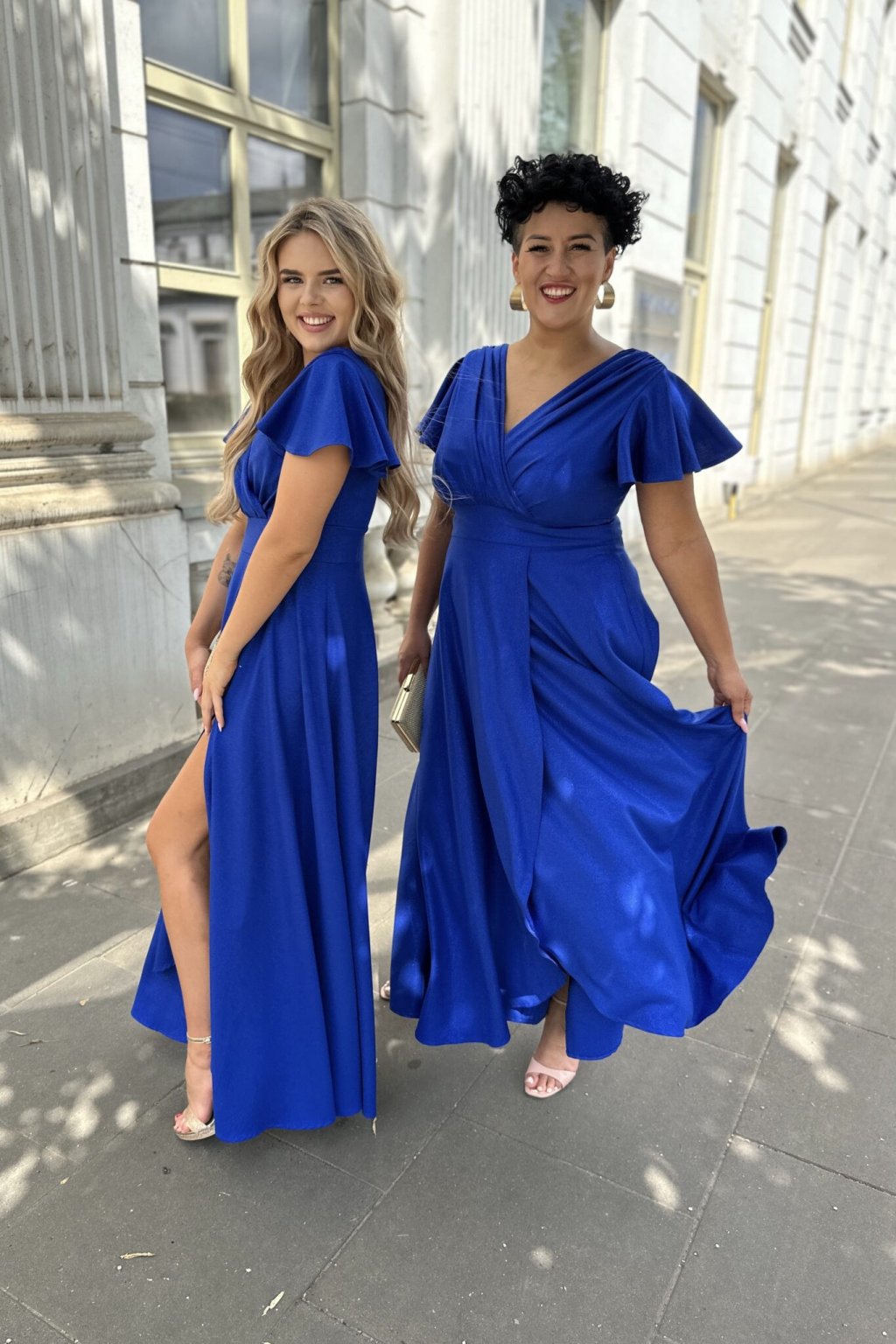 Dlhé lesklé modré spoločenské šaty LORENA 95/4