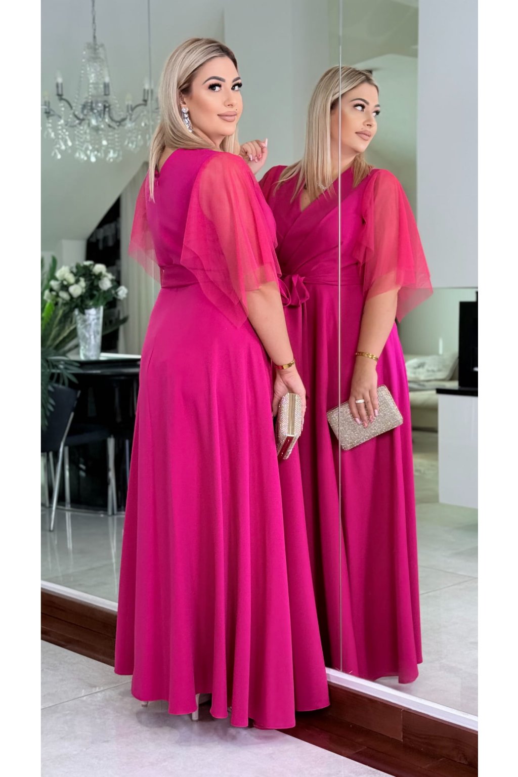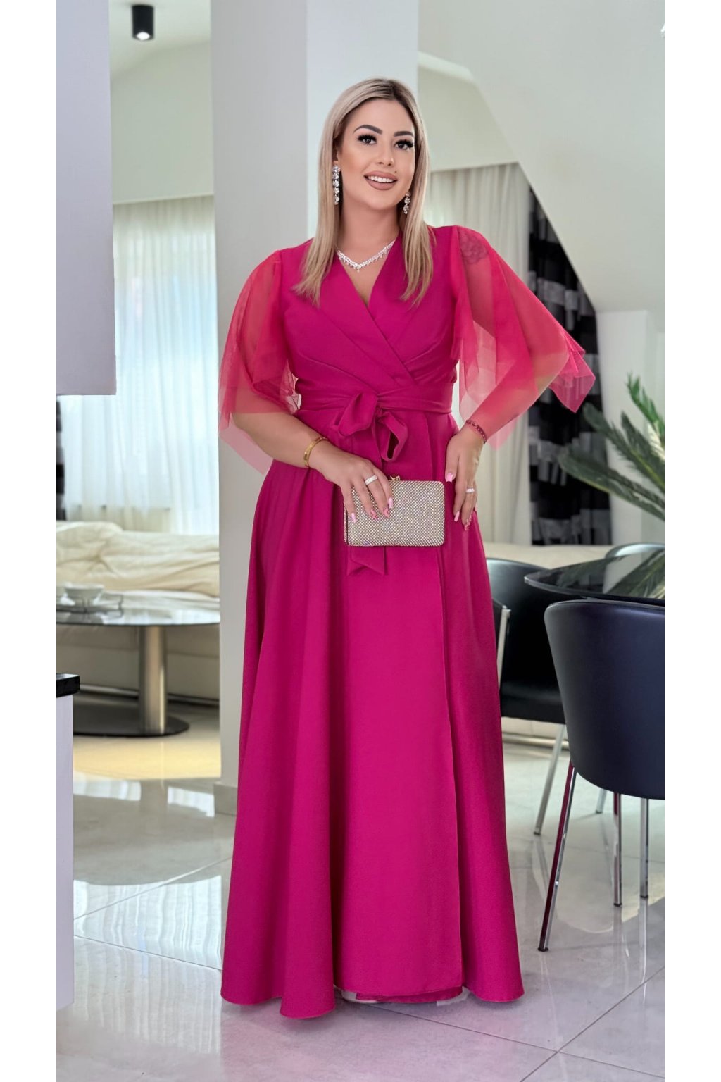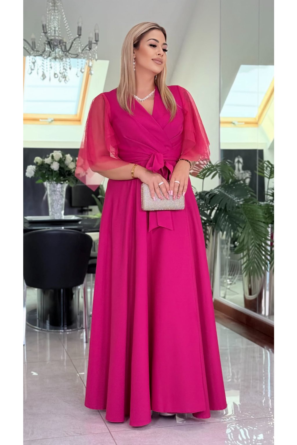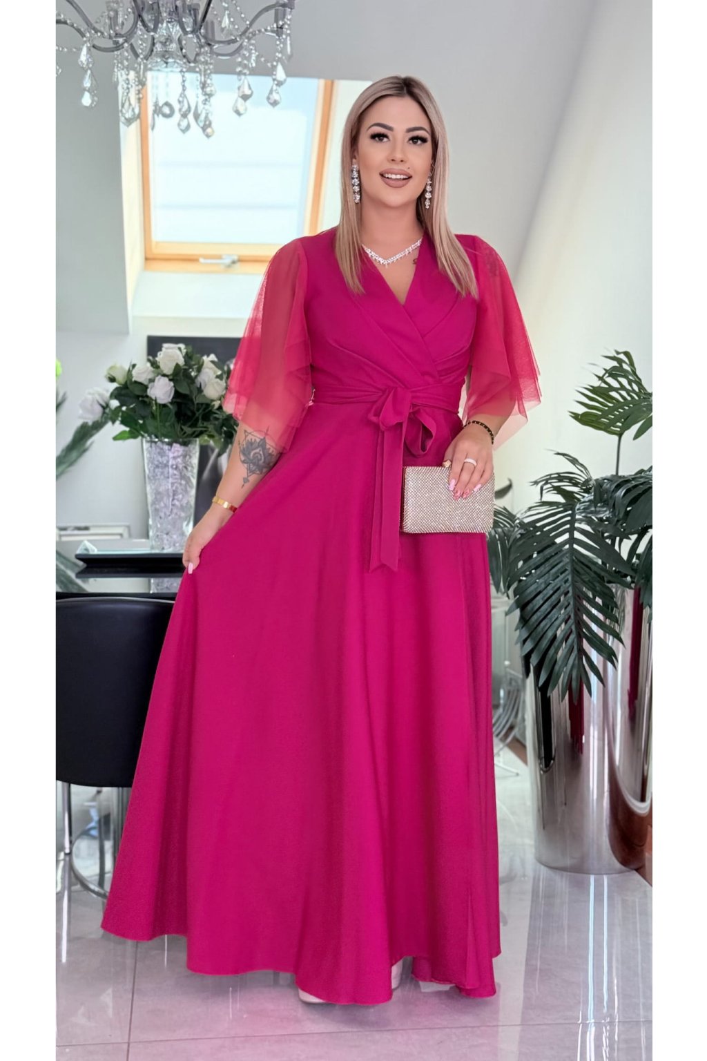 Dlhé spoločenské šaty s tylovým rukávom. Celok je štýlový, krásne zvýrazňujúci ženské prednosti. Výstrih tvaru "V" navyše zoštíhľuje postavu. Šaty sú vhodné na plesy, svadby, stužkové slávnosti a podobne.