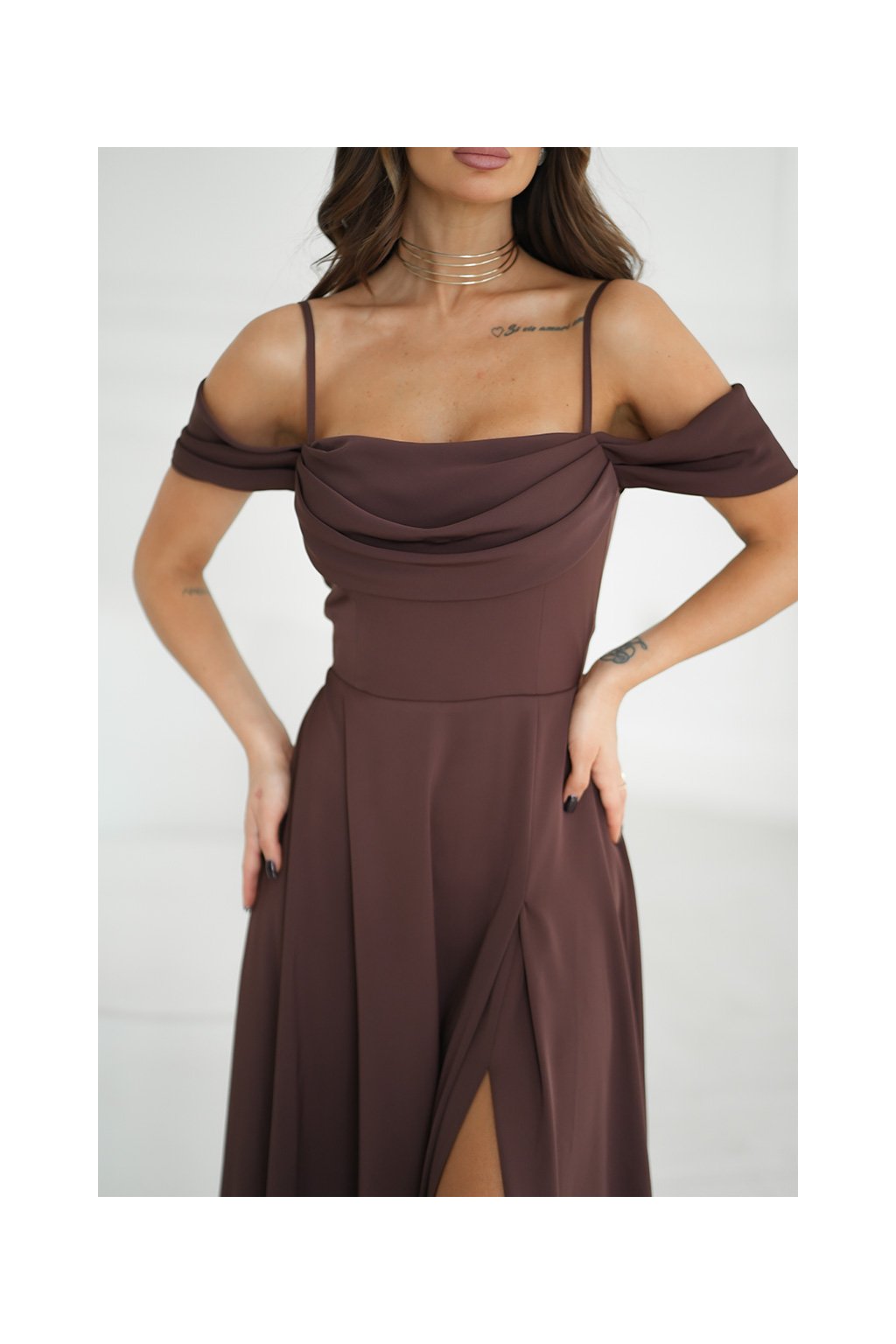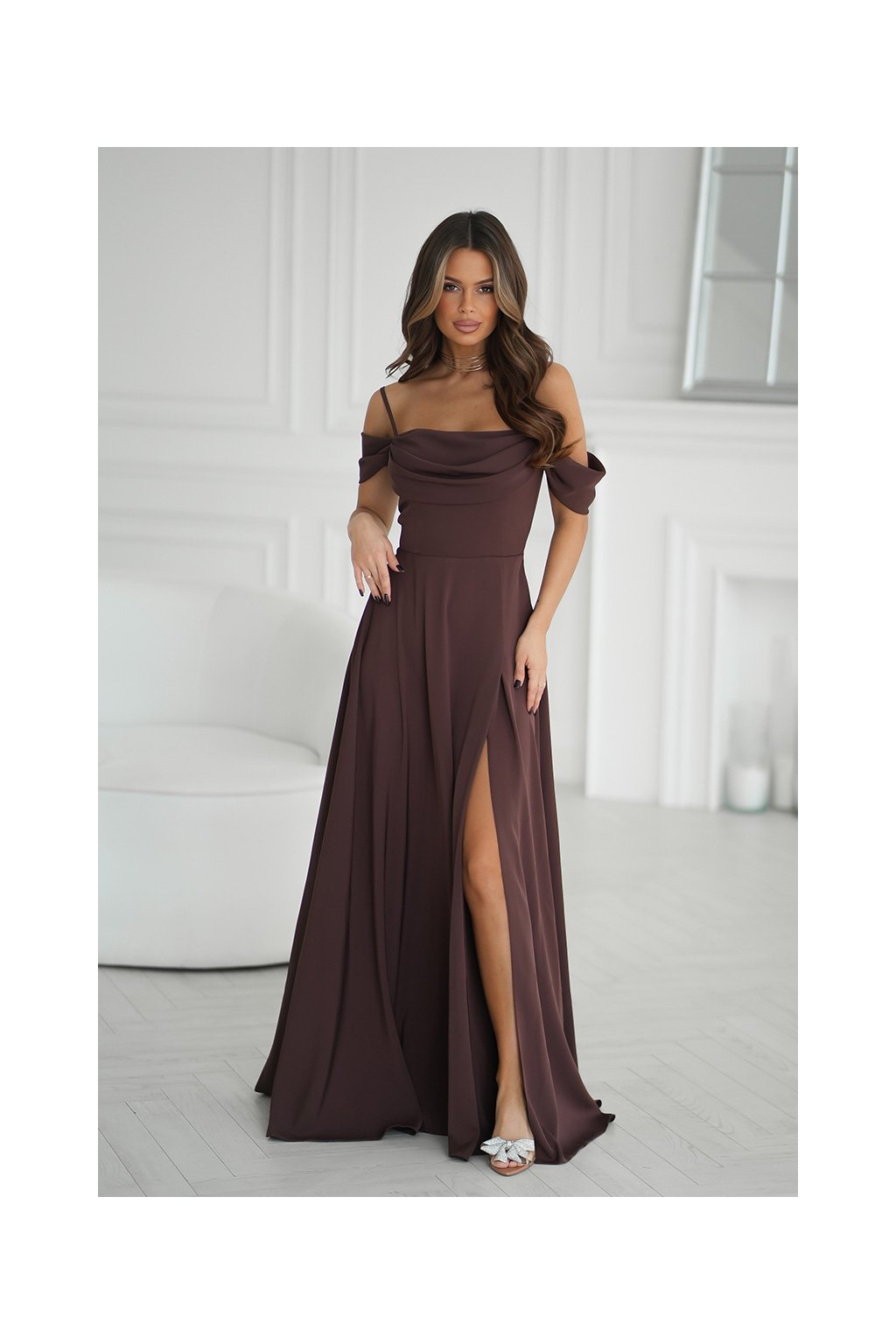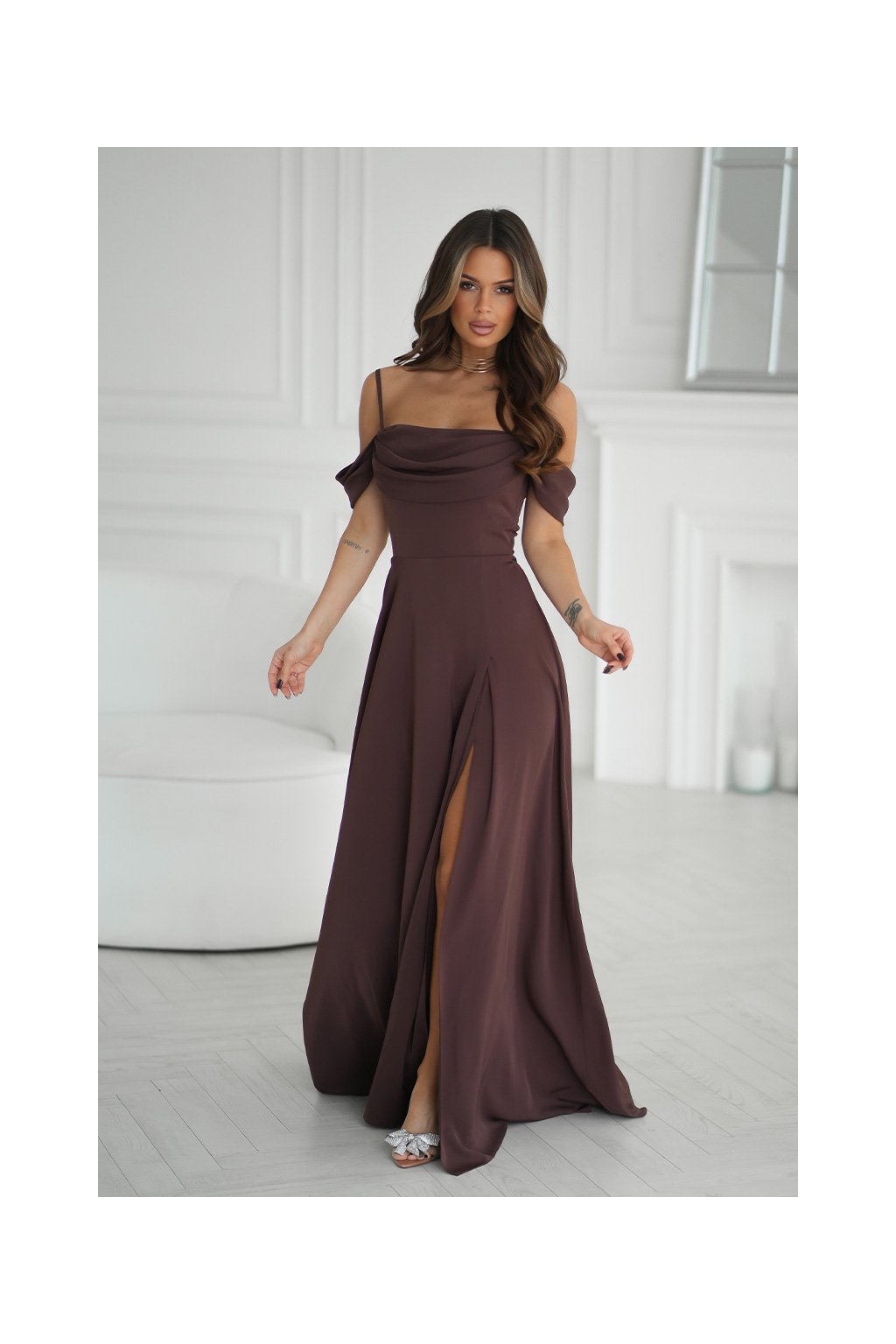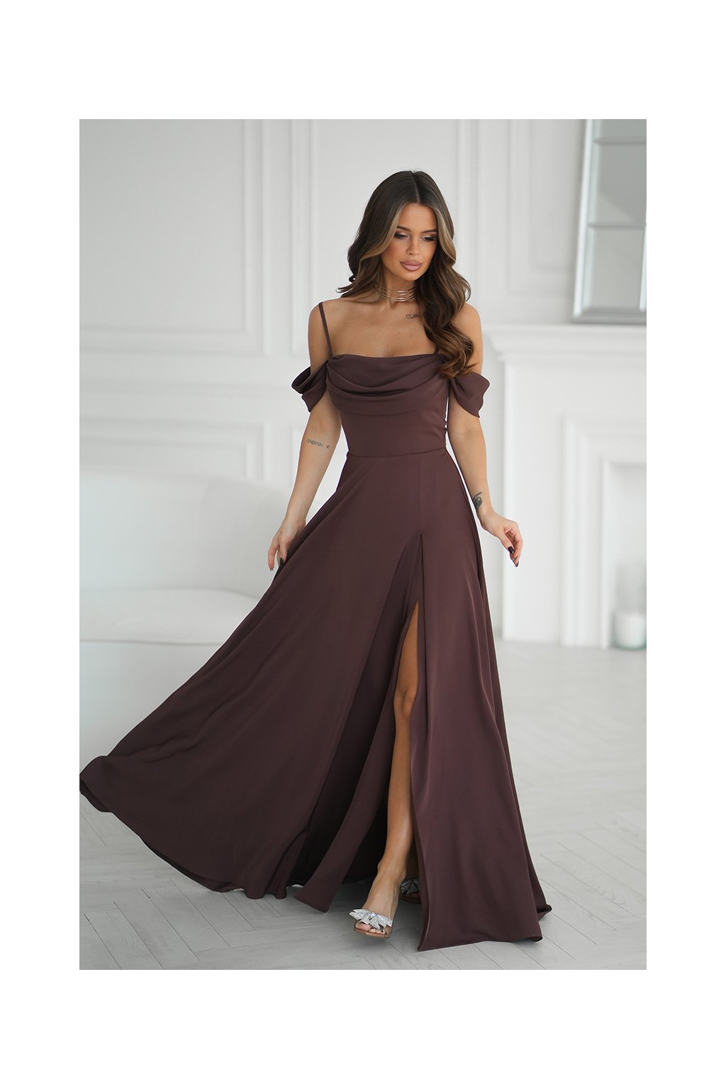 Dlhé tmavohnedé spoločenské šaty s padavými rukávmi 320/5