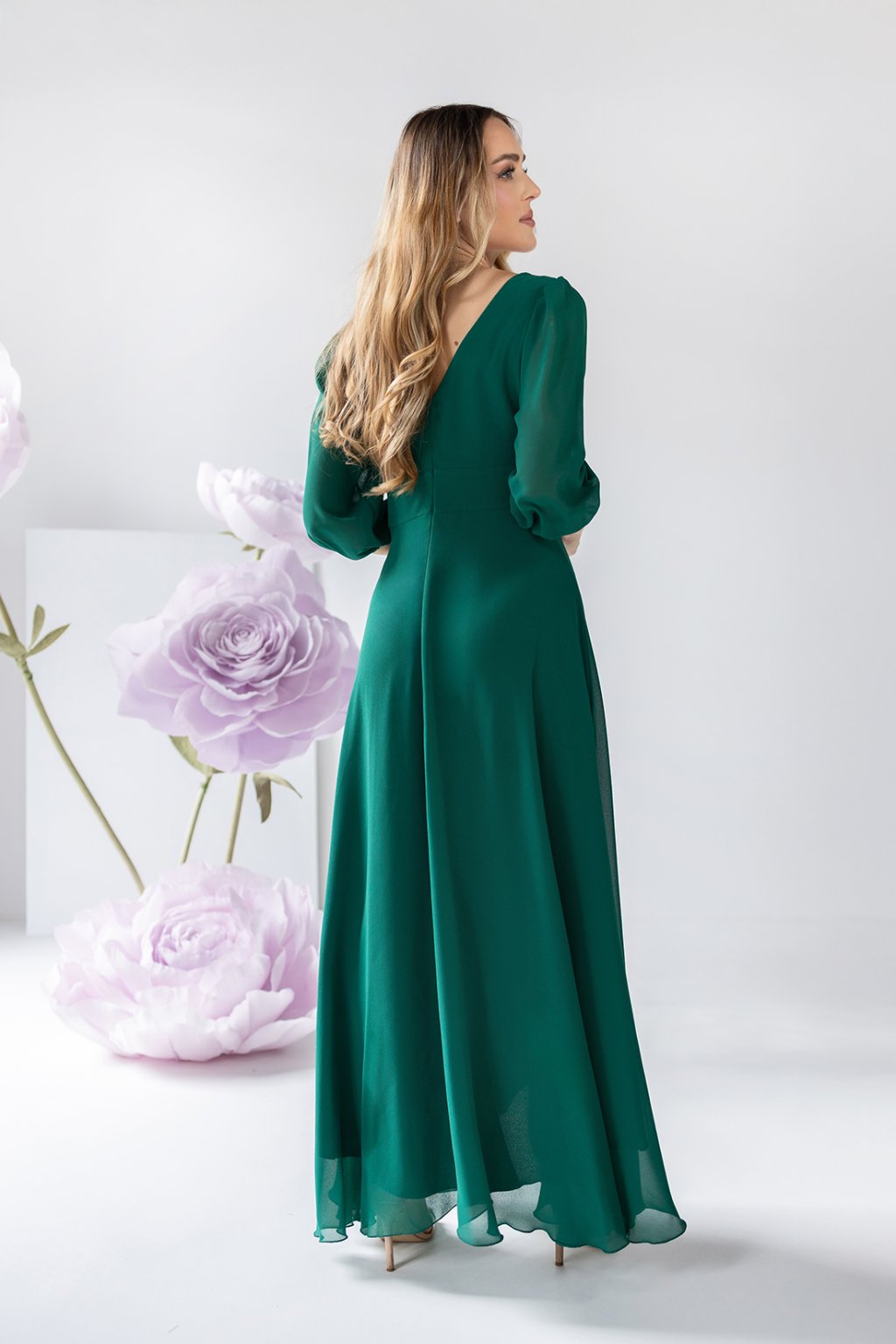 Dlhé tmavozelené spoločenské šaty s 3/4 rukávom 98/2