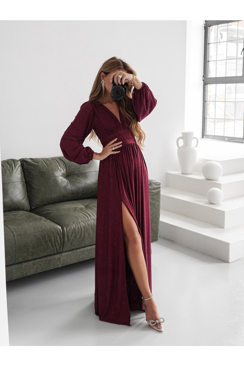 Ak ste milovníčkami všetkého, čo sa trbliece, tieto šaty sú pre vás ako stvorené. Vďaka vysokému rozparku na ľavej nohe do miestnosti vstúpite sexi krokom a nepochybne rozžiarite všetko naokolo. Vhodné na svadbu, ples a podobne. Materiál šiat je mierne elastický a vzadu sa šaty zapínajú zipsom.