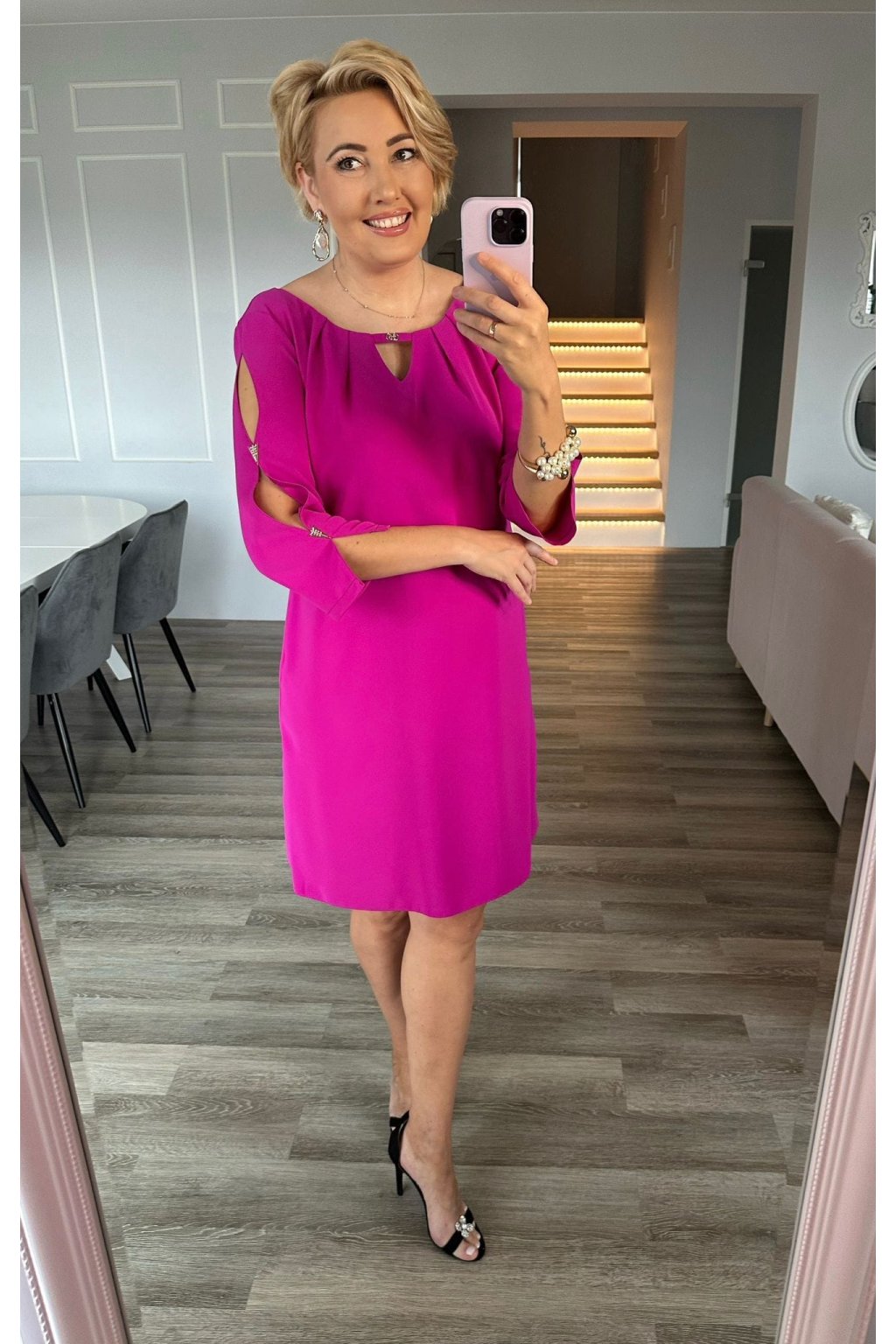 Krátke cyklaménové šaty s 3/4 rukávom 197/3