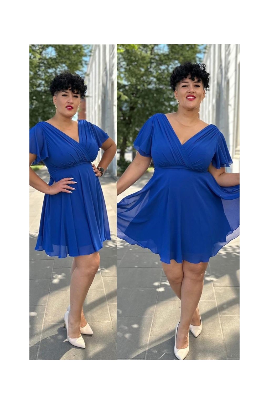 Krátke spoločenské šaty. Sú to skvelé šaty na krst, sväté prijímanie, ale aj na svadbu, oslavu. Dokonale zdôrazňuje ženské prednosti. Dobre navrhnutý výstrih robí poprsie veľmi atraktívnym, zatiaľ čo pás a voľne uvoľnené boky zoštíhľujú postavu a pôsobia veľmi elegantne. Ľahký a vzdušný materiál je ideálny na letné spoločenské príležitosti.