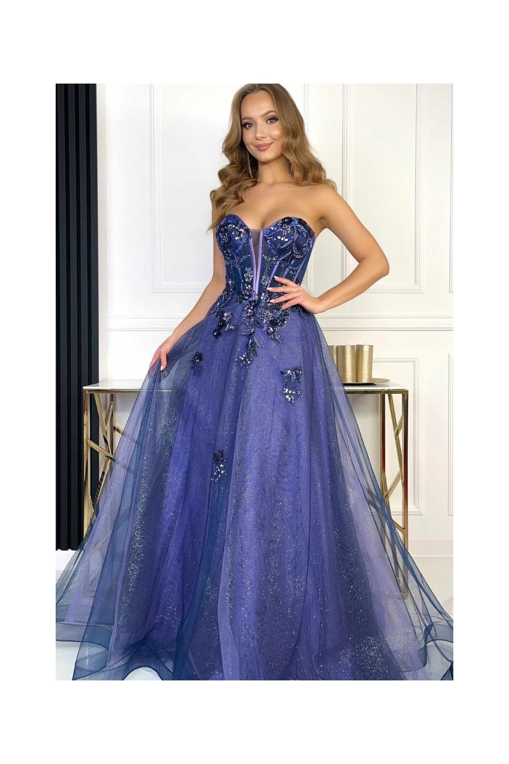 Luxusné tylové spoločenské šaty s korzetom 18595
