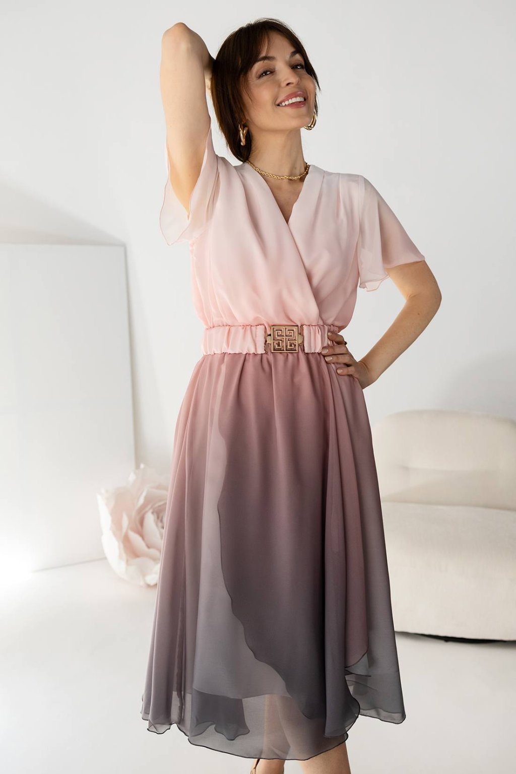 Spoločenské midi šaty s opaskom TX31/3